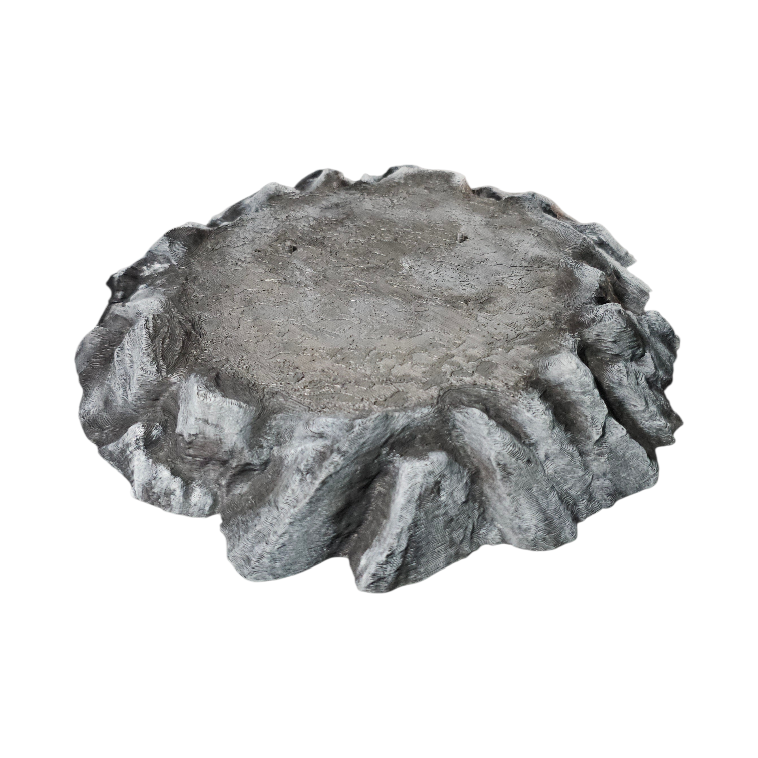 Base escénica con acabado tipo roca, esculpida y pintada a mano para imitar piedra real con relieve y textura profunda.