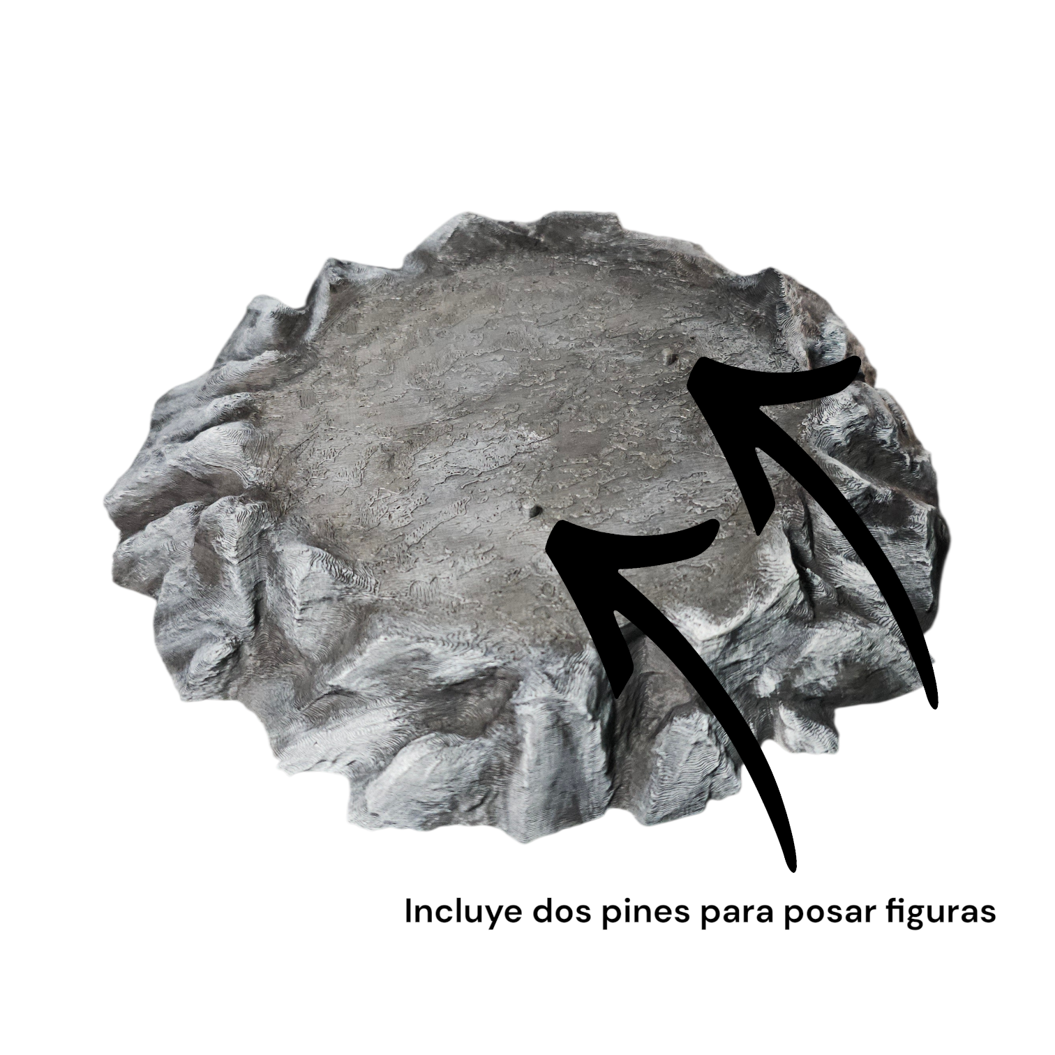 Base rocosa para figuras de acción disponible en dos tamaños, ideal para dar un look más dinámico y profesional a tu vitrina o diorama.